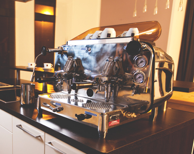 Die zweigruppige E61 ist in ihrem Design kompakt, eine visuelle Reduktion auf das Wesentliche: guter Espresso.
